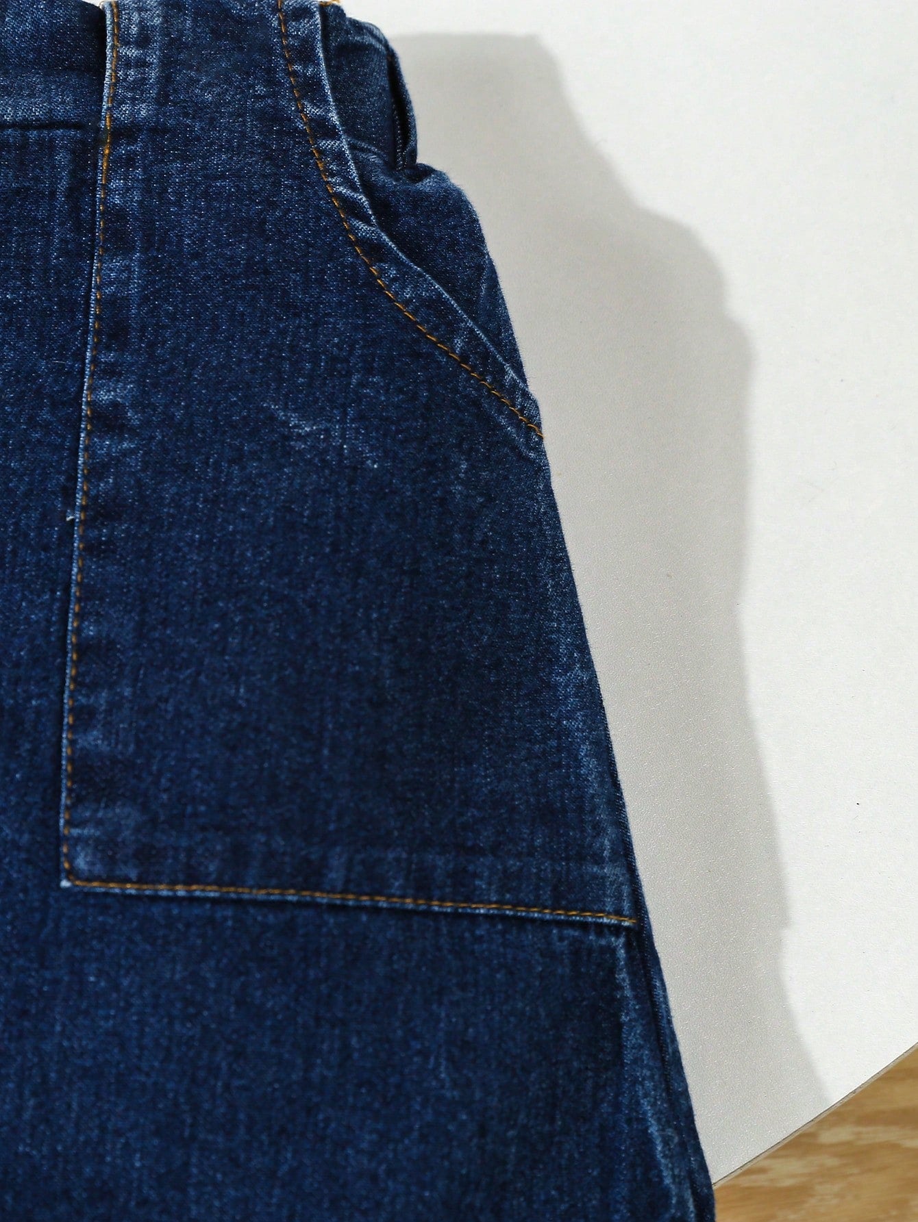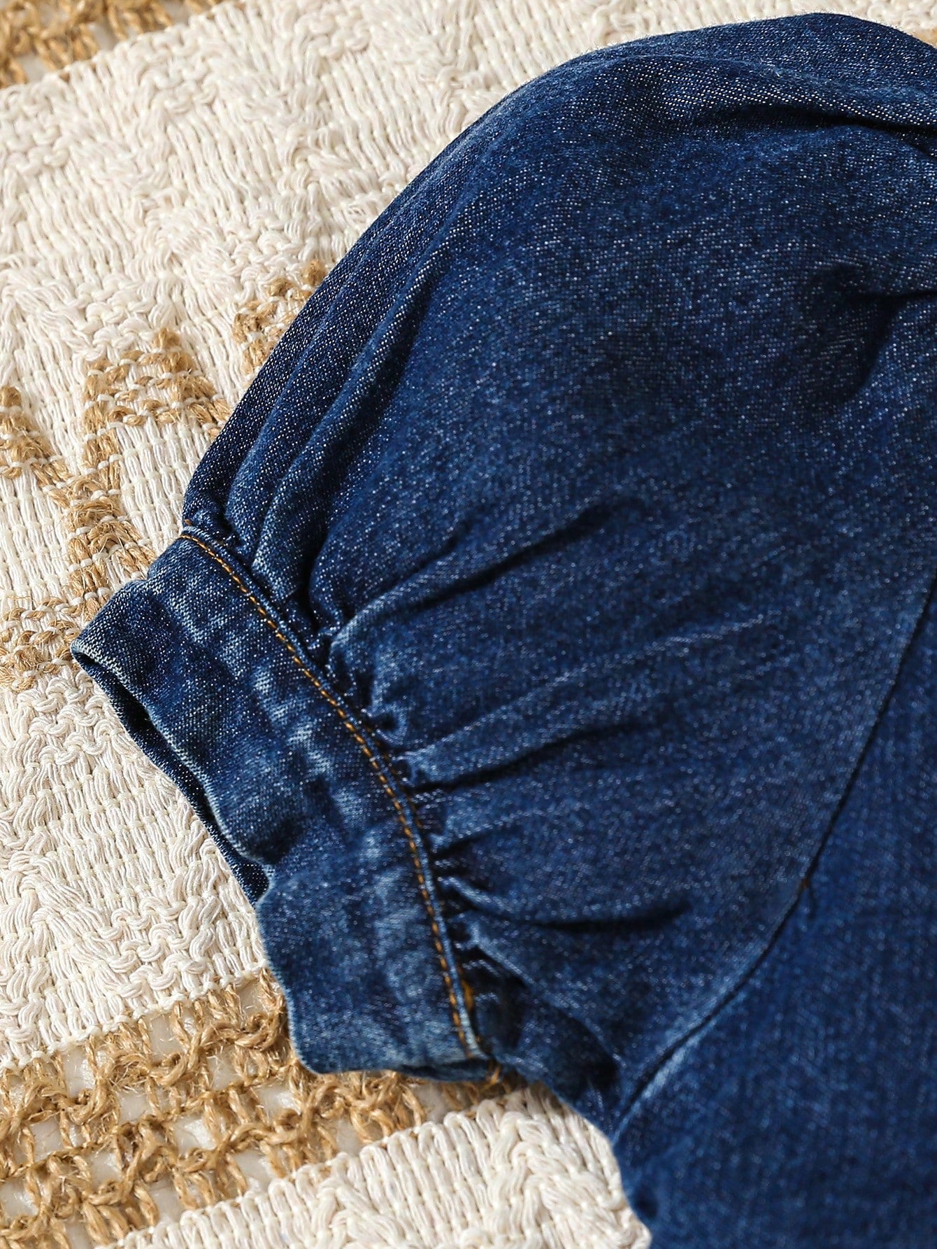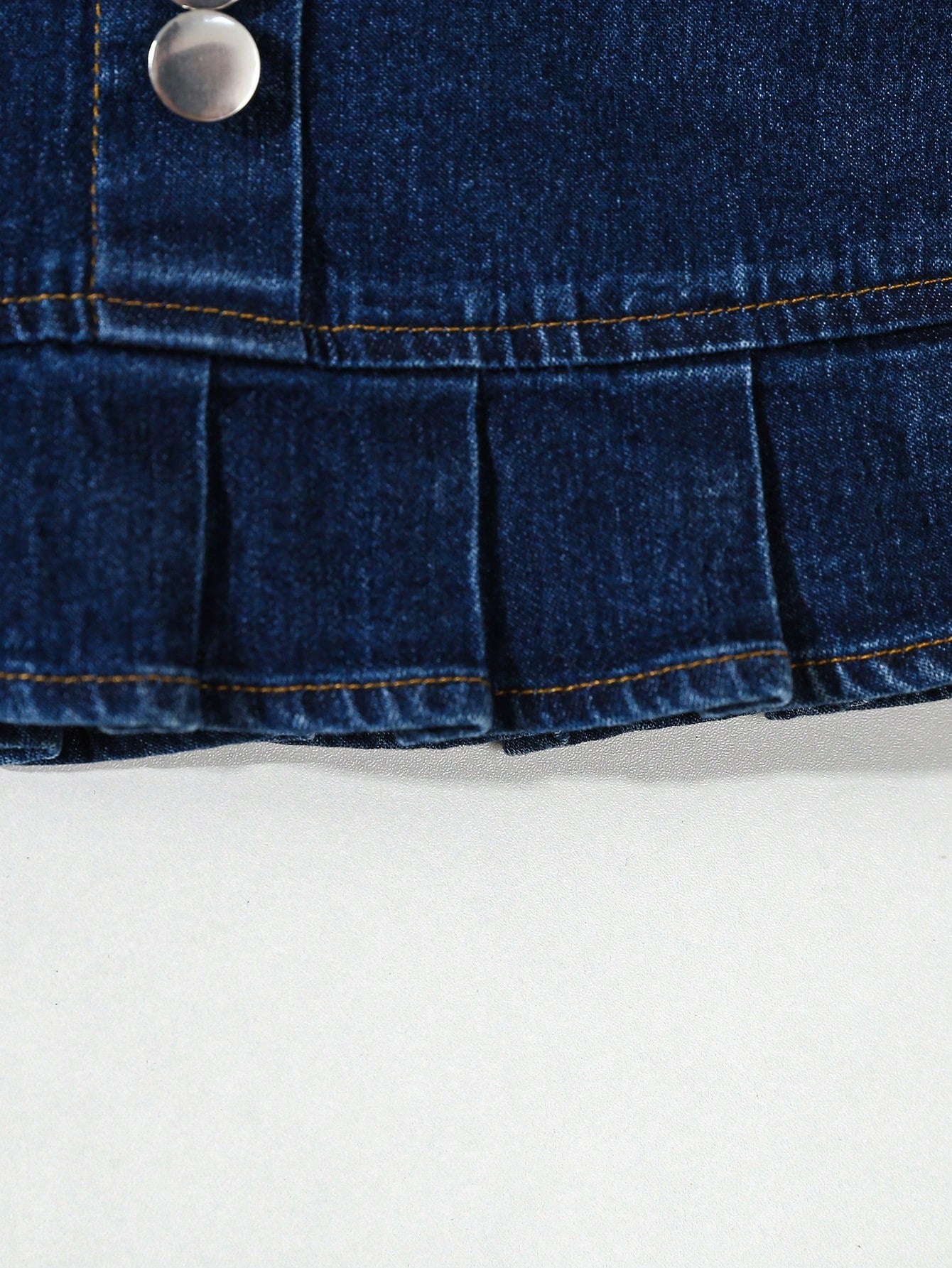 Chaqueta vaquera de manga abullonada con falda vaquera acampanada y cinturón, conjunto de moda casual