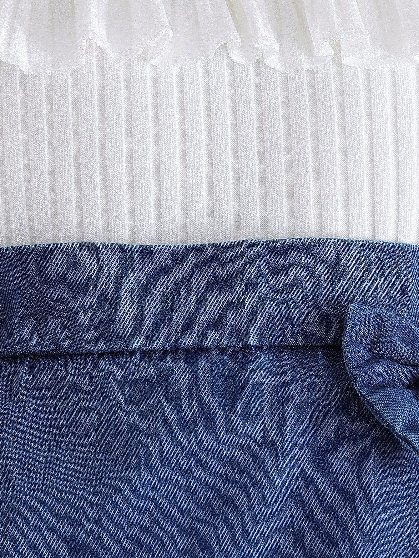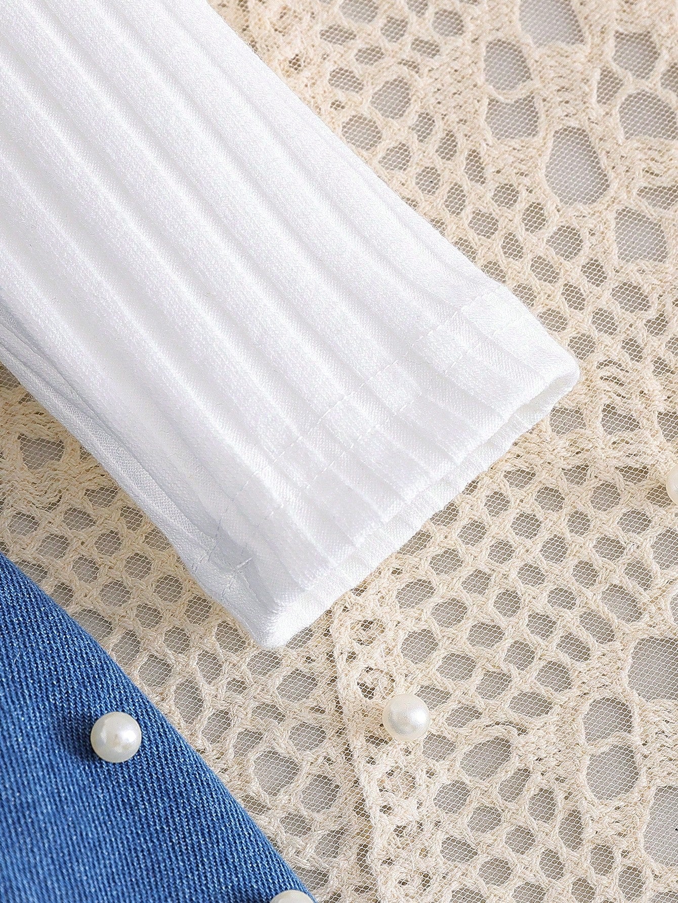 Conjunto 2 piezas de blusa de manga larga informal y falda pantalón de mezclilla