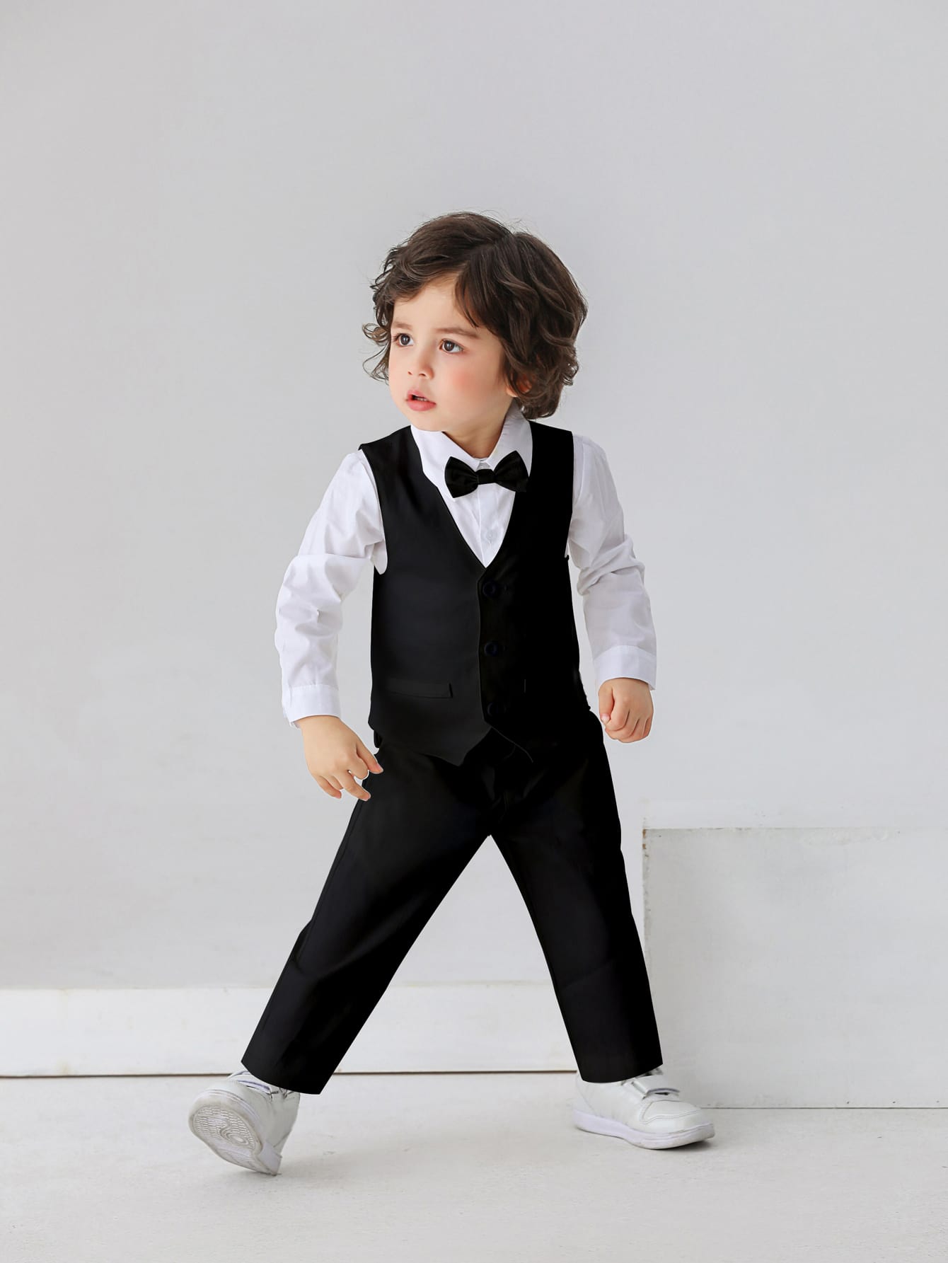 Conjunto de 3 piezas camisa blanca de manga larga con corbata de moño, chaleco y pantalon elegante