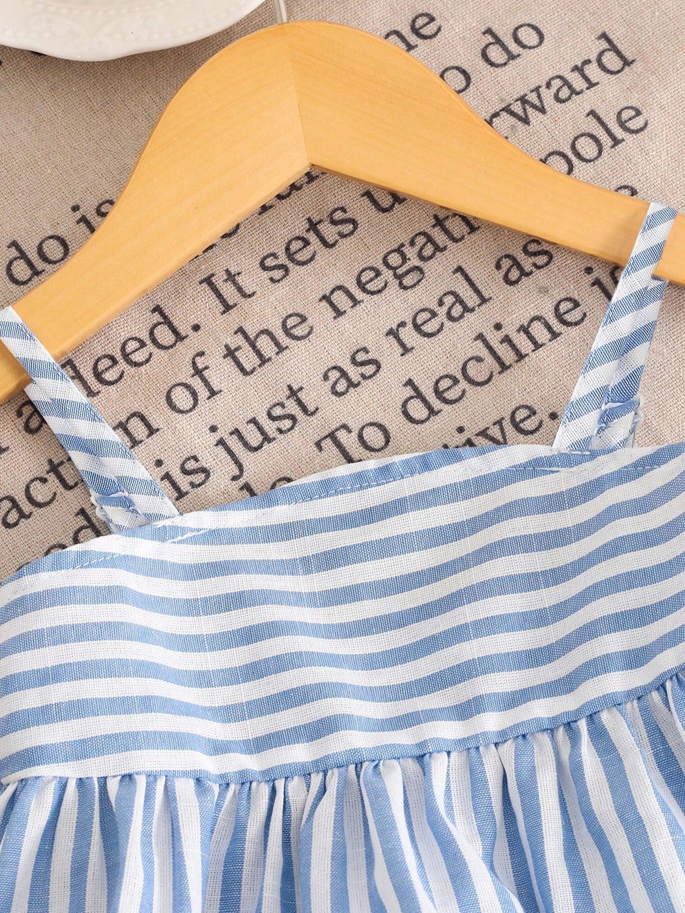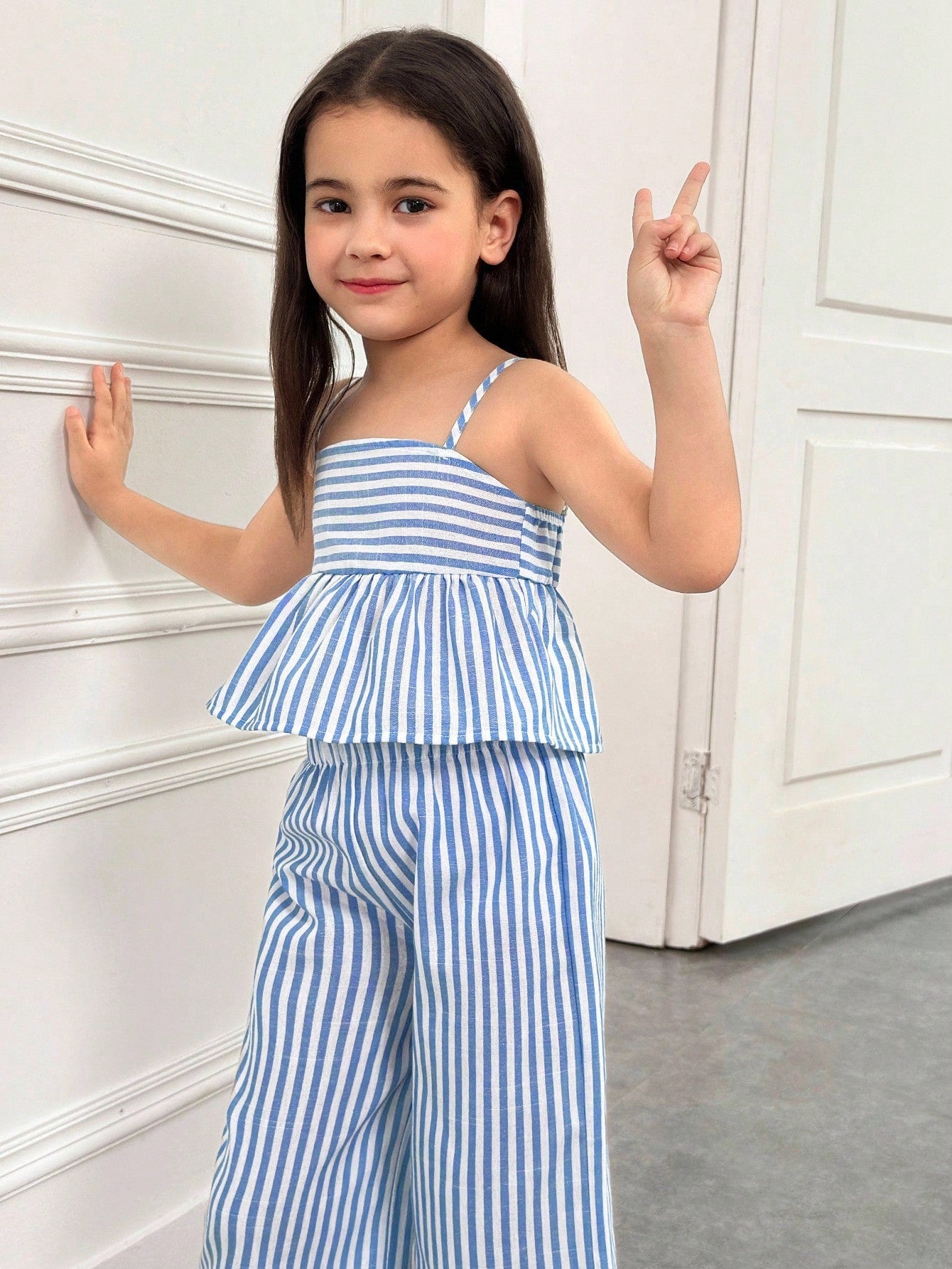 Conjunto de top de tirantes de tela a rayas azul y blanco con empalme y pantalones de pierna ancha