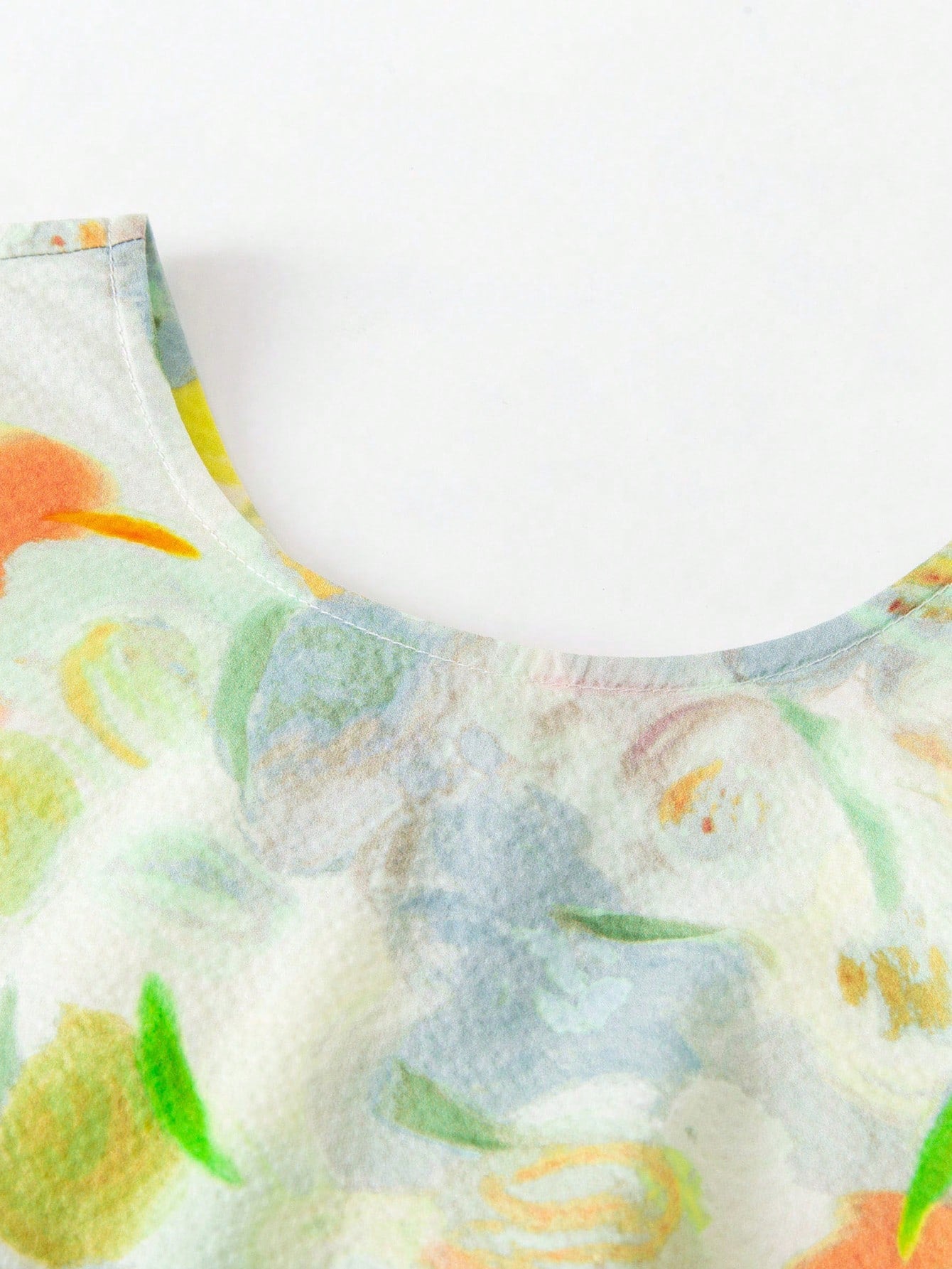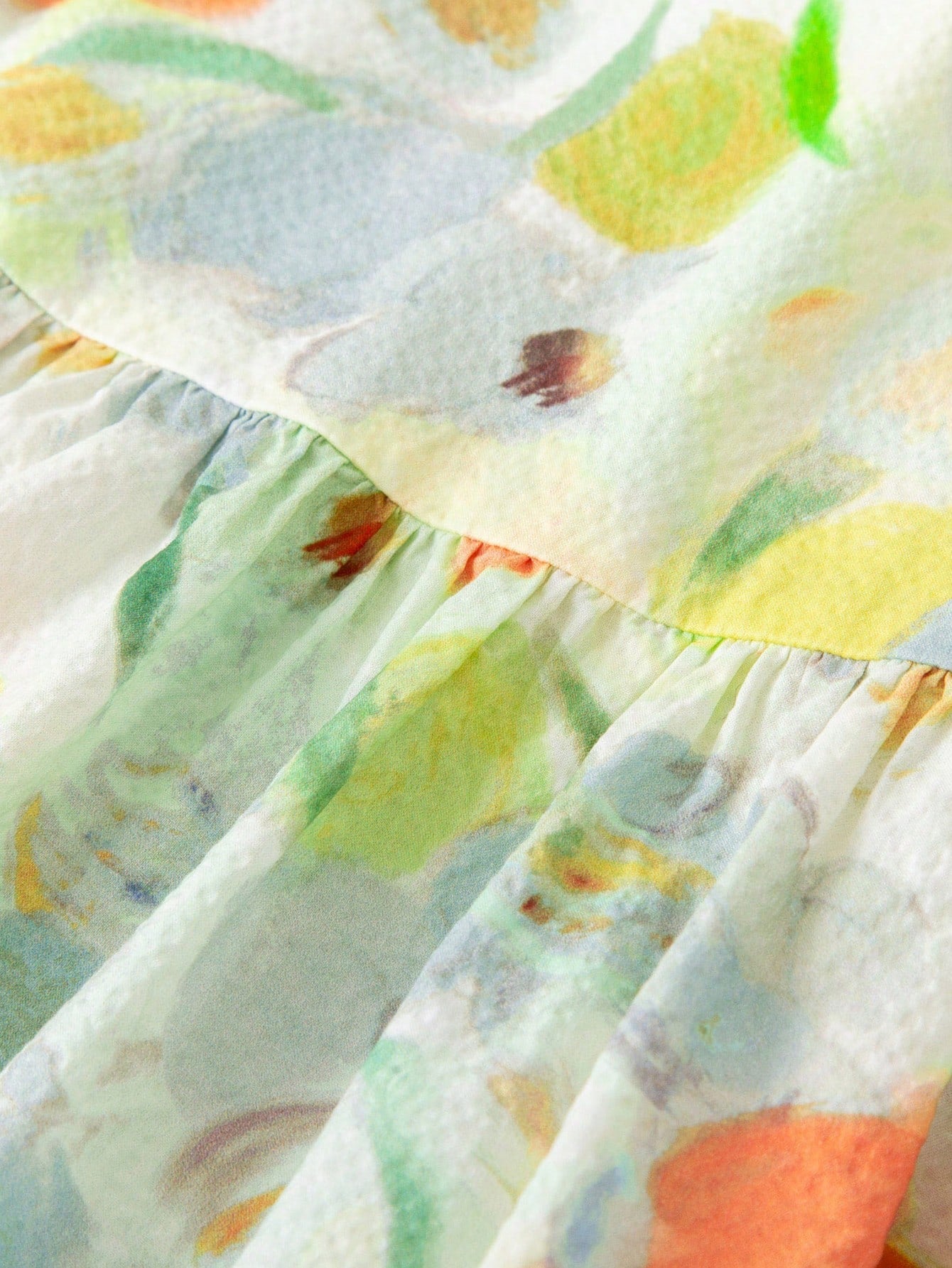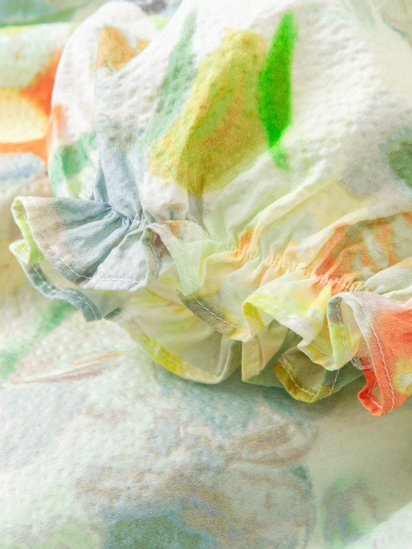 Vestido colorido de manga corta con mangas globo suave y transpirable para niñas